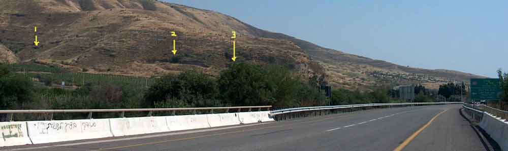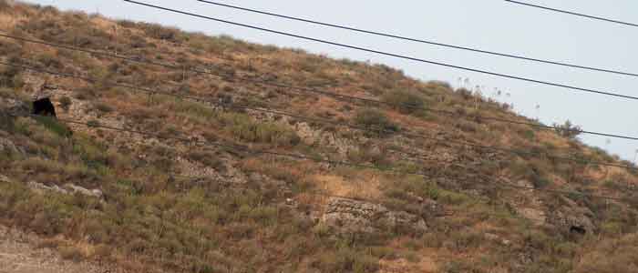 Kursi Hill, shows cave #3 to left and hillside cut dug while