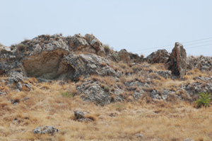 View from the shore of the limestone bluff or knob north of Gofra Beach.